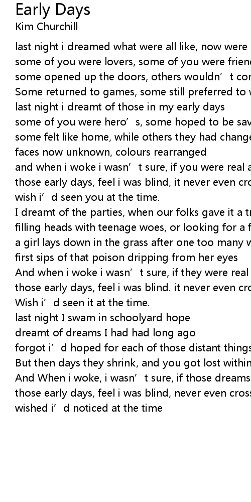 | last night i dreamt of those in my early days | |