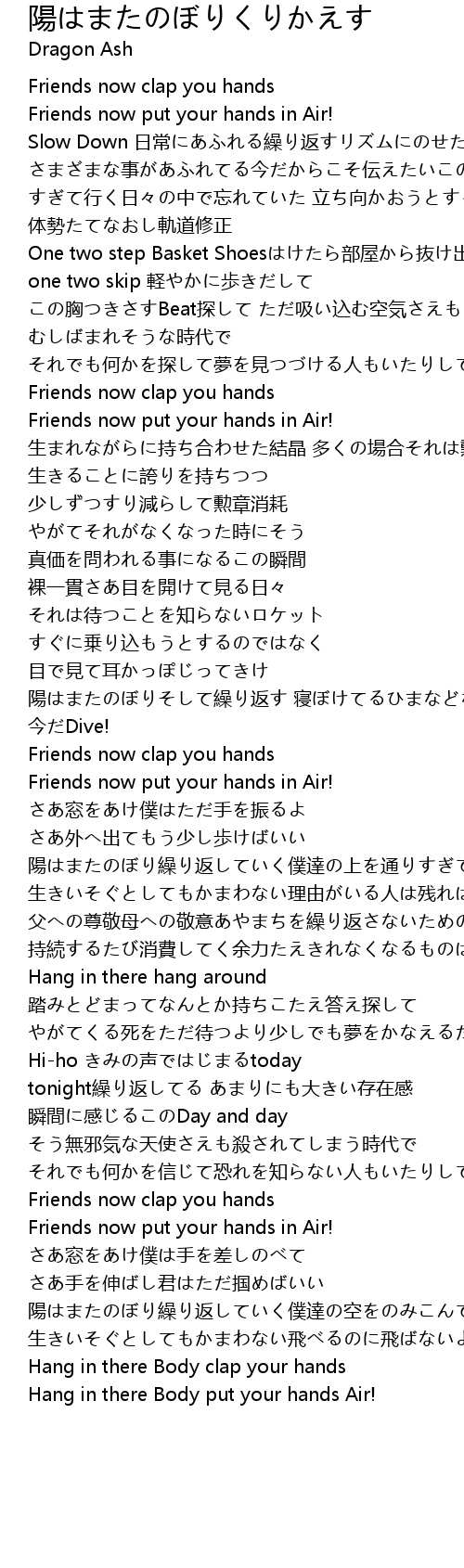 | 陽はまたのぼりそして繰り返す 寝ぼけてるひまなどない 今だDive! | |