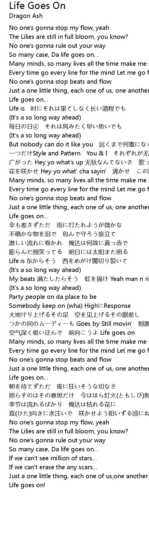 | 空气深く吸い迂んで 前向こうよ Life goes on | |