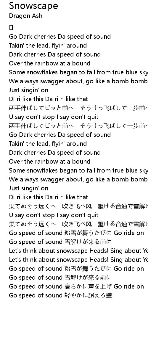 | Go speed of sound 粉雪が舞うたびに Go ride on | |