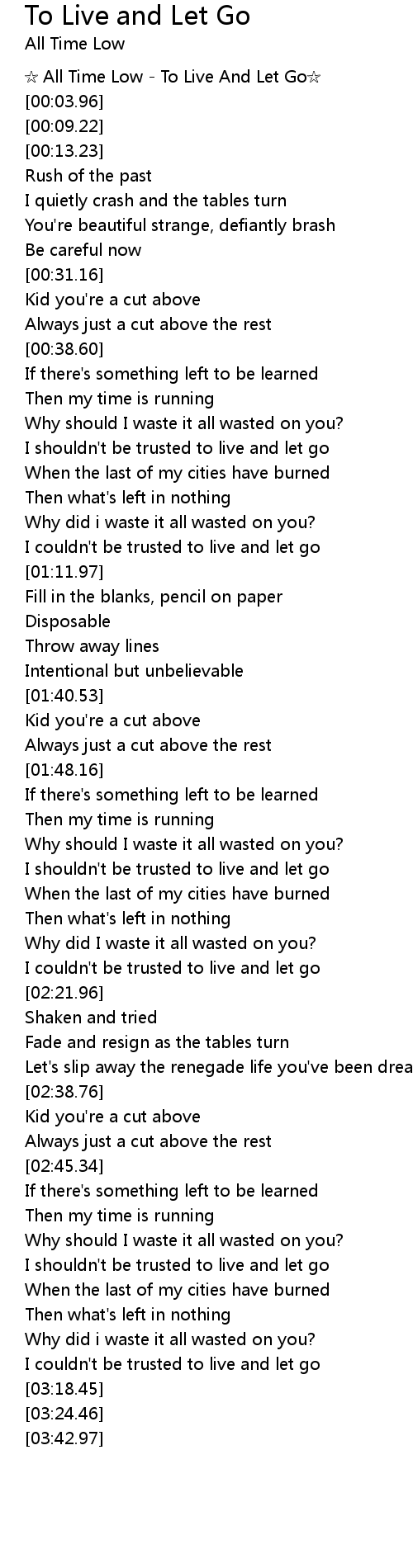 | [00:02.40] | All Time Low To Live And Let Go |