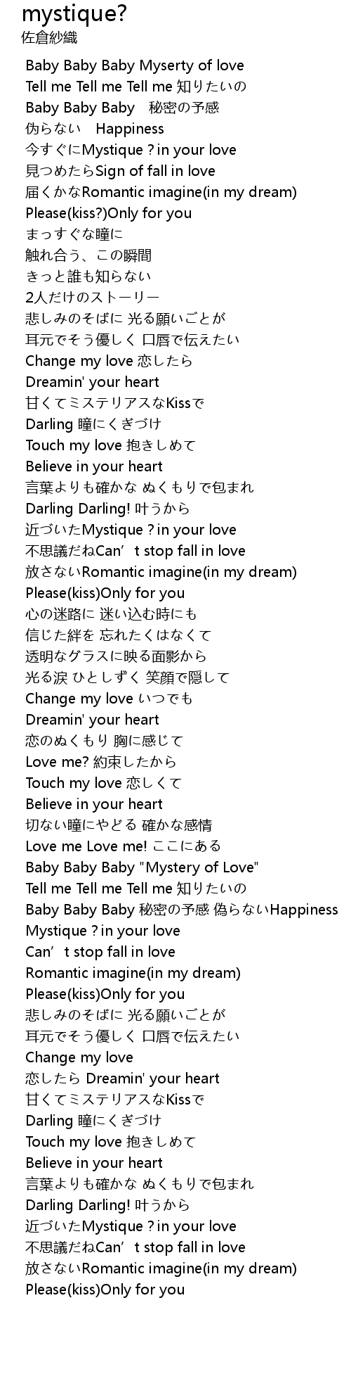 | [00:03.885] | Baby Baby Baby Myserty of love |