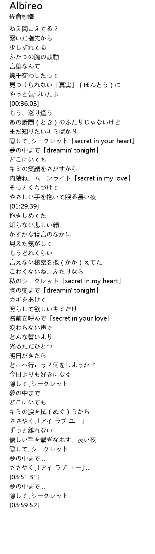 | [03:39.58] | 隠して、シークレット… |