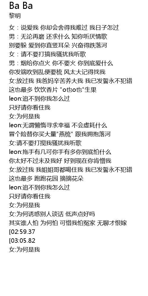 | [02:03.83] | leon:拖手有几可你手有多你到底怕什么 |