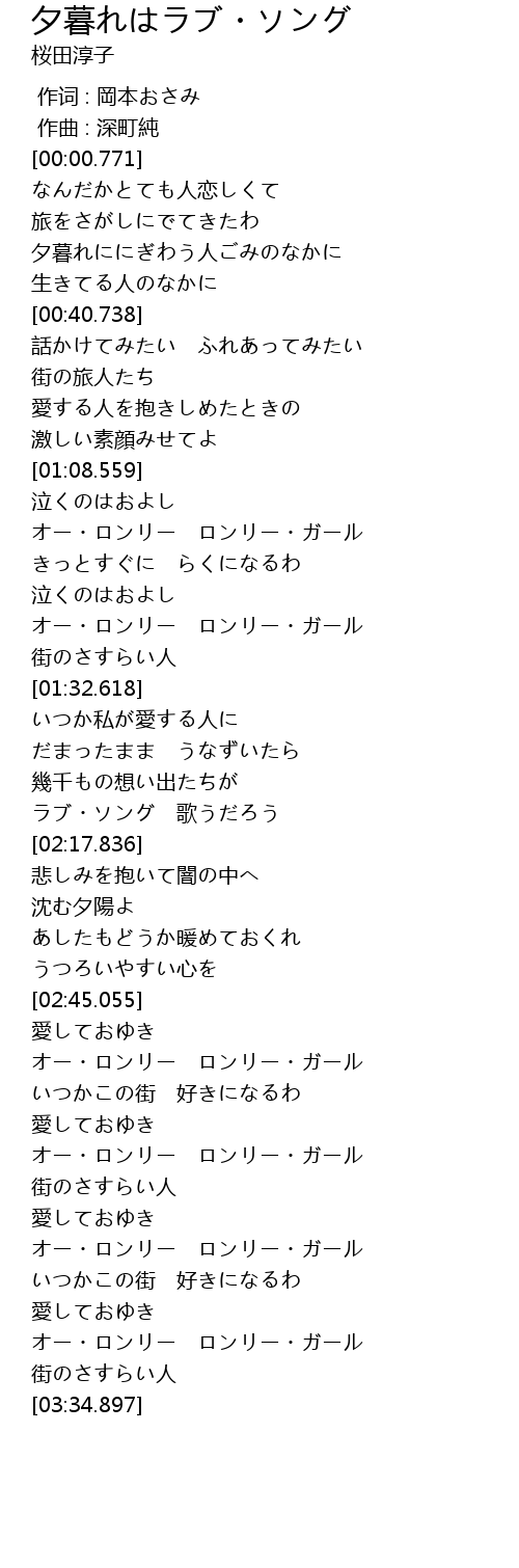 | [03:25.153] | オー・ロンリー ロンリー・ガール |