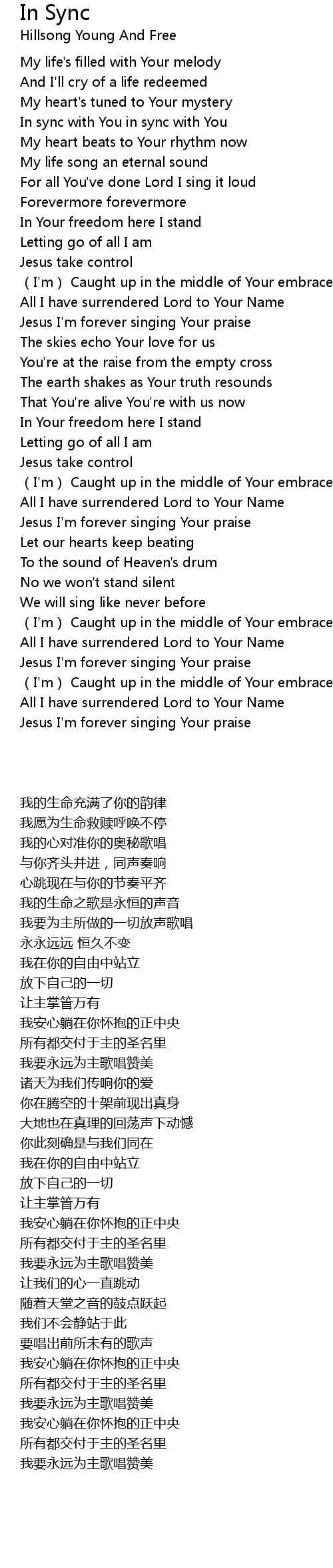 | [02:42.000] | All I have surrendered Lord to Your Name |