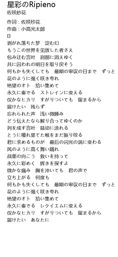 | 作词:佐咲纱花 | |