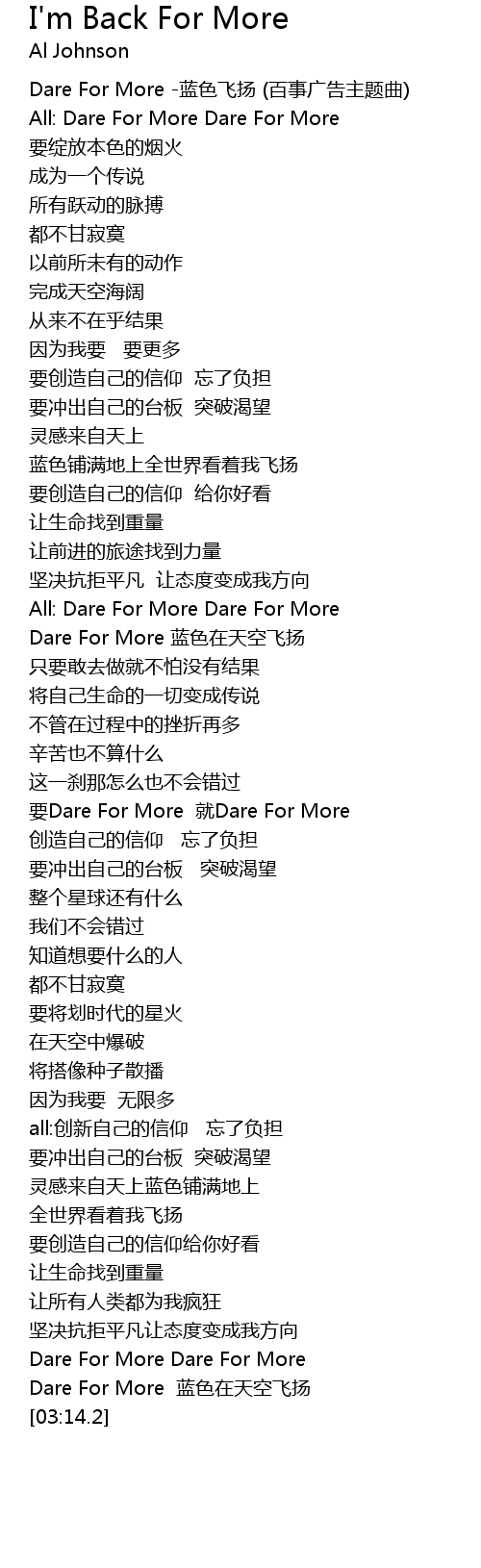| [02:01.6] | 要Dare For More 就Dare For More |