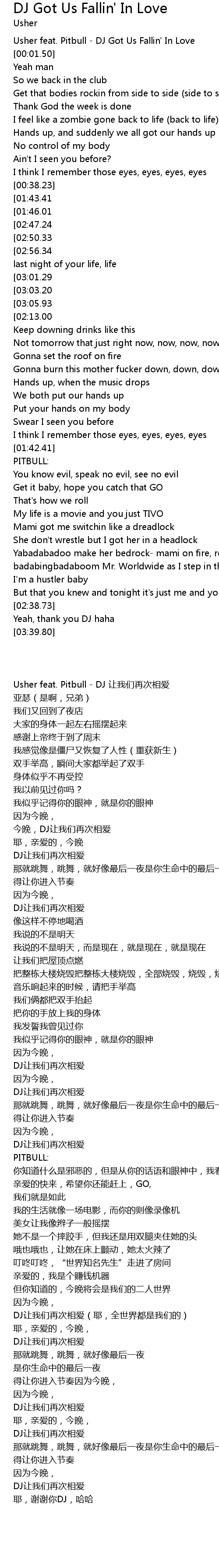 | [00:00.50] | Usher feat. Pitbull - DJ Got Us Fallin' In Love |