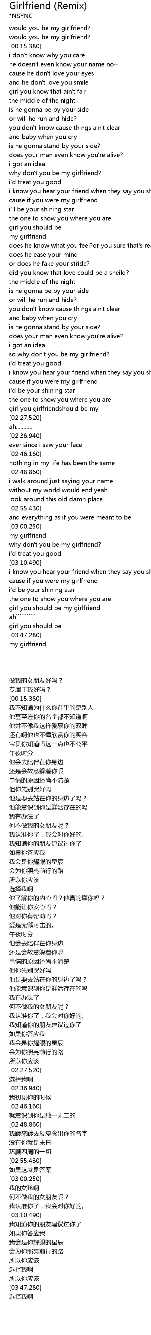 Girlfriend (Remix) 歌词