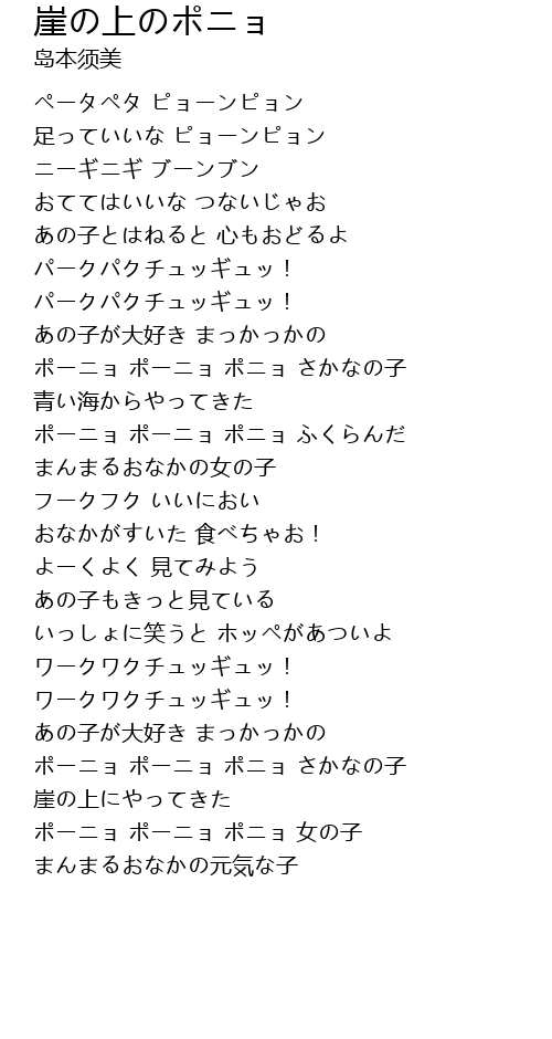 | [03:36.23] | ポーニョ ポーニョ ポニョ 女の子 |