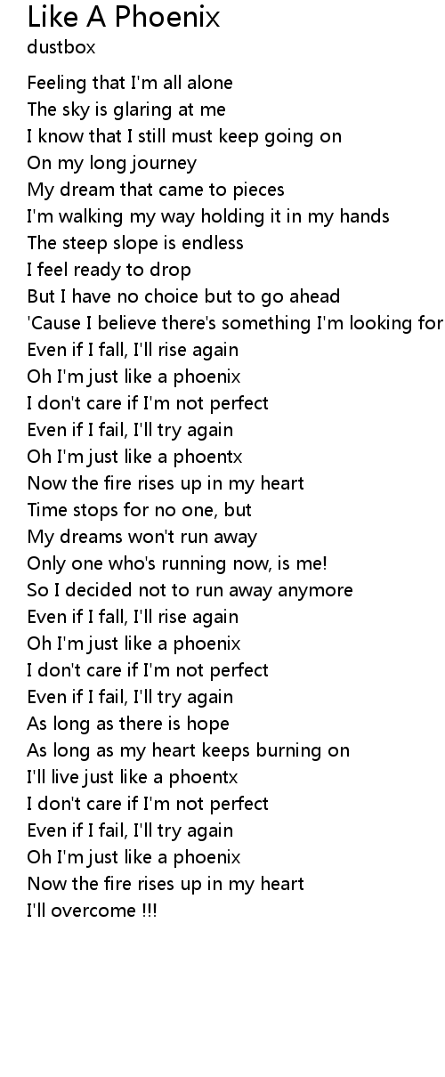 Oh I'm just like a phoenix |