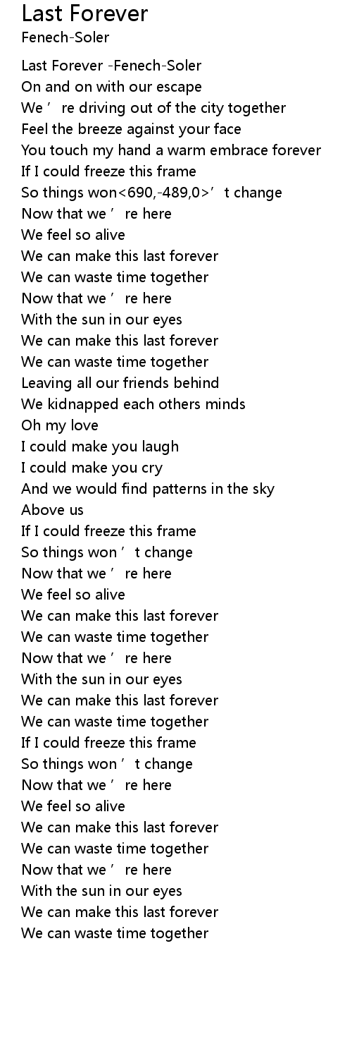 | [00:00.481] | Last Forever -Fenech-Soler |