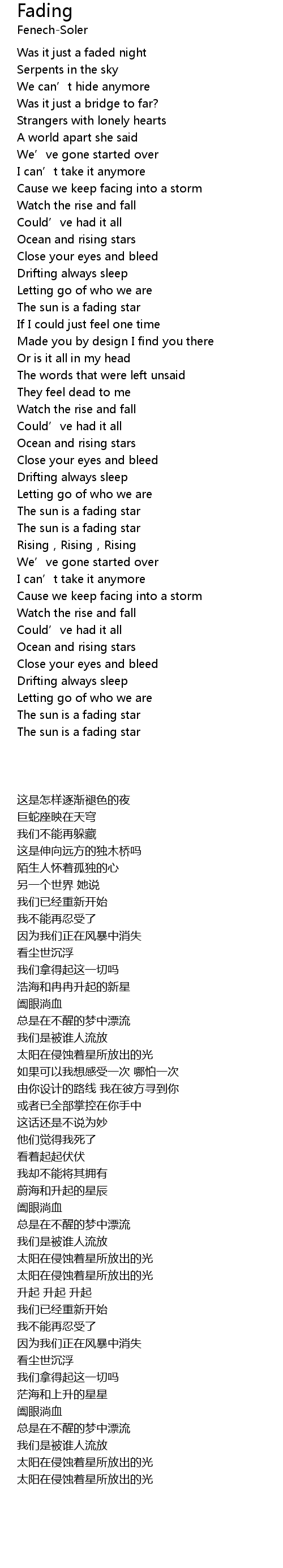 | [01:36.41] | 太阳在侵蚀着星所放出的光 |