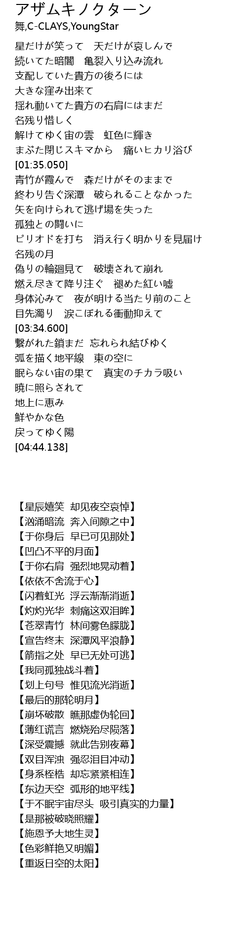 | [04:16.049] | 眠らない宙の果て 真実のチカラ吸い |
