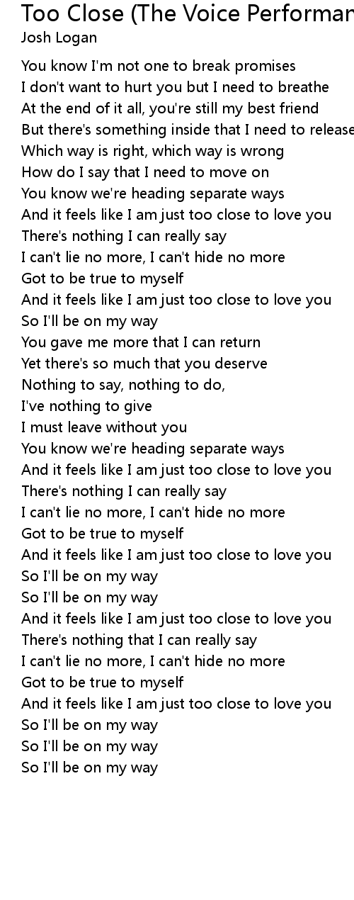 And it feels like I am just too close to love you |