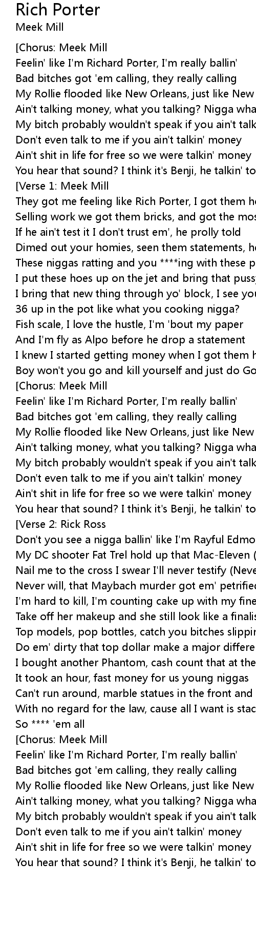 Feelin' like I'm Richard Porter, I'm really ballin' |