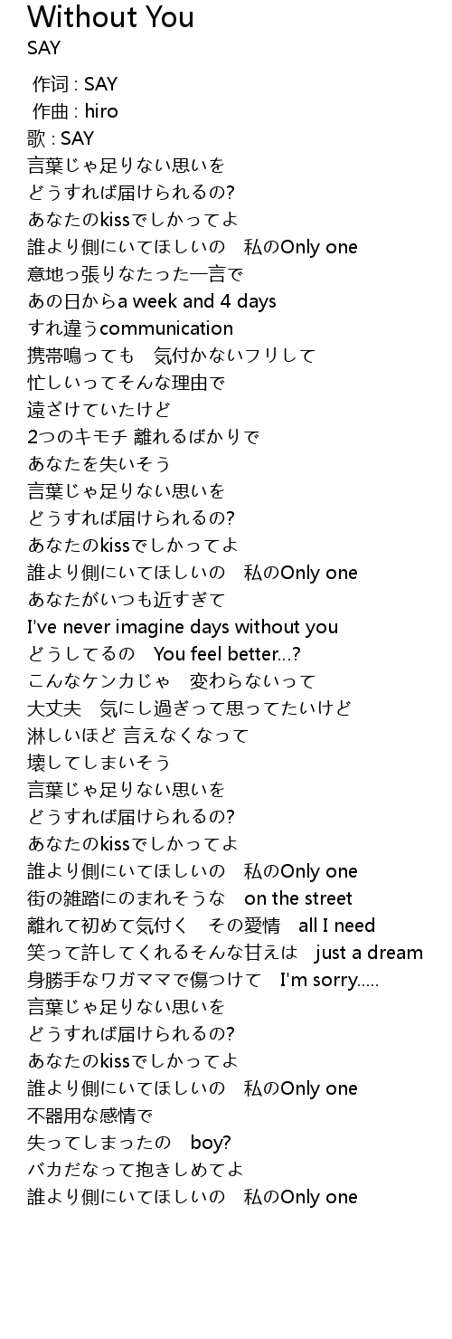 | [03:24.20] | 誰より側にいてほしいの 私のOnly one |