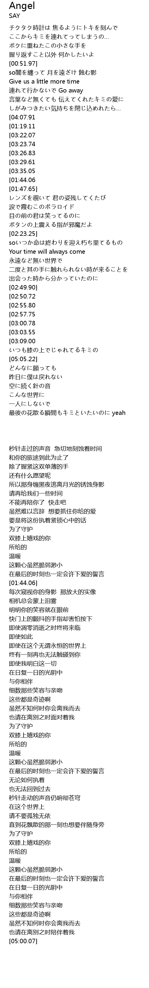 | [04:27.13][03:35.05][01:37.44] | zui hou shun jian ai shi |