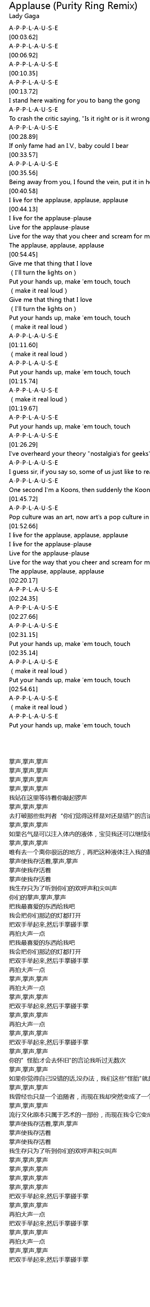 | [00:52.06] | The applause, applause, applause |