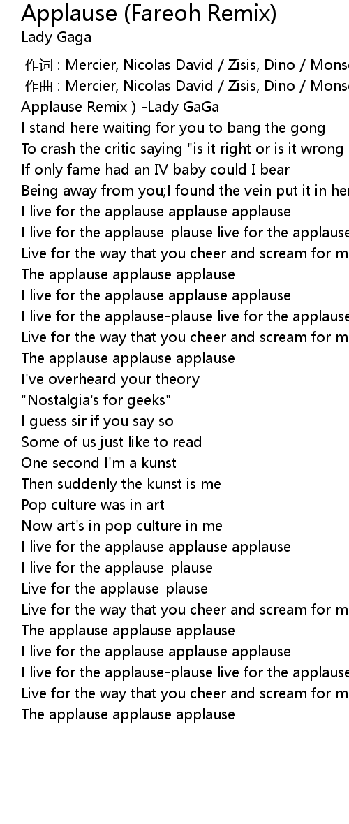 | [00:00.241] | Applause Remix Lady GaGa |