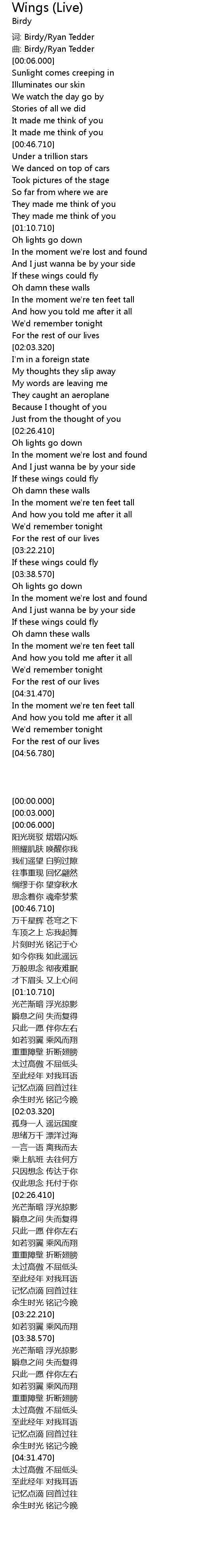 | [00:03.000] | 曲: Birdy/Ryan Tedder |