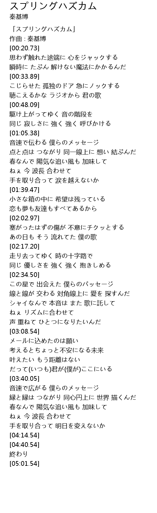 | [03:55.80] | 春なんで 陽気な追い風も 加味して |