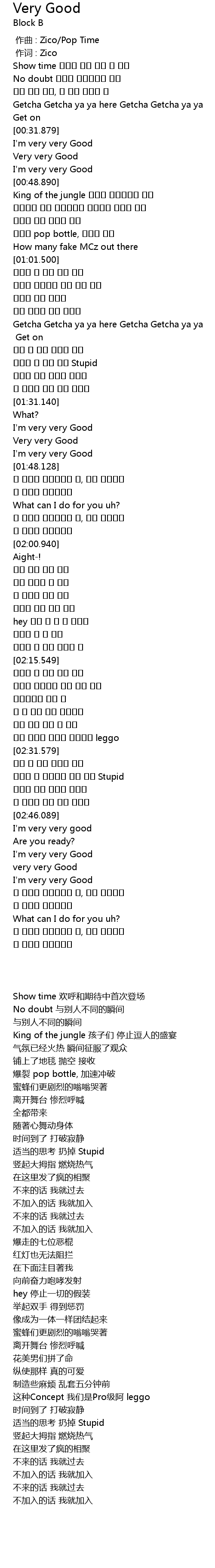 | [00:01.00] | 作词 : Zico |