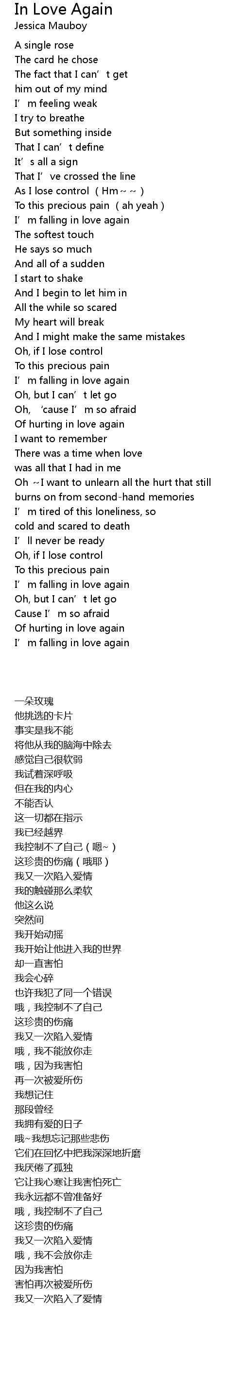 | [00:40.28] | I' m falling in love again |