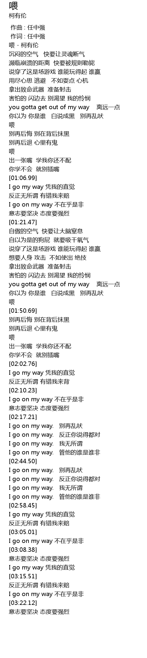 | [02:54.76] | I go on my way. 管他的谁是谁非 |