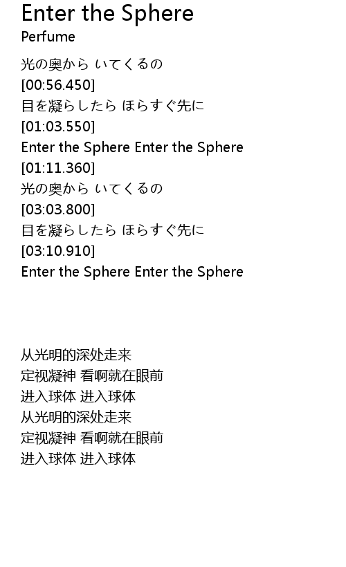 | [03:12.600] | Enter the Sphere Enter the Sphere |