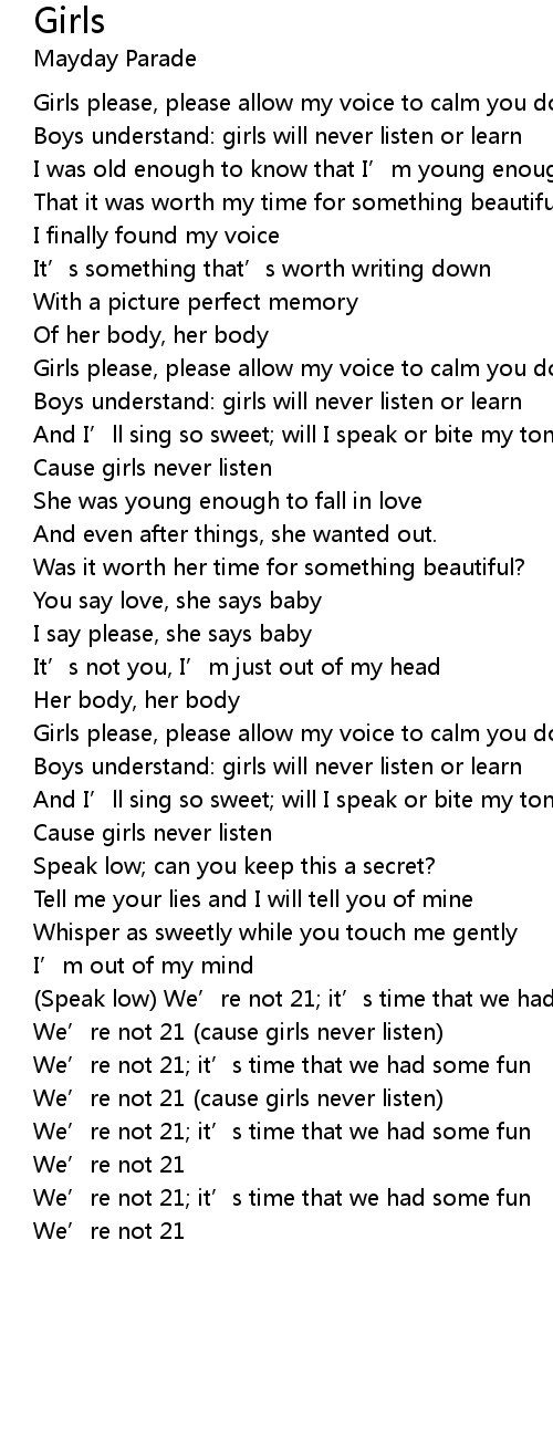 | We' re not 21 cause girls never listen | |
