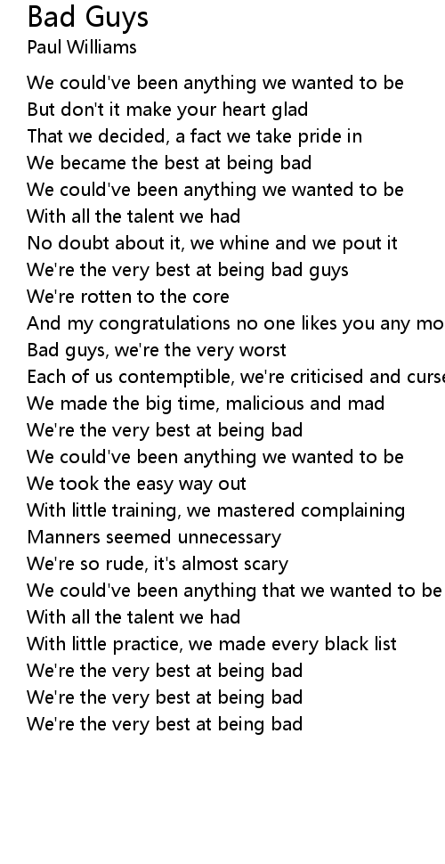 Bad guys, we're the very worst |