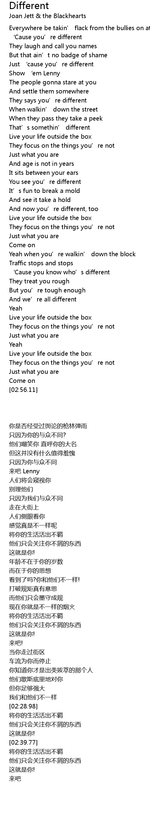 | [00:28.15] | Just ‘cause you’re different |