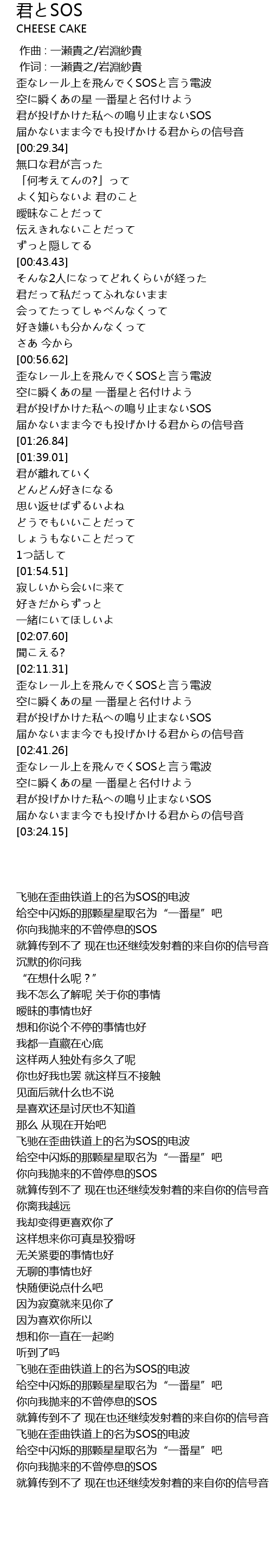 | [00:14.92] | 君が投げかけた私への鳴り止まないSOS |