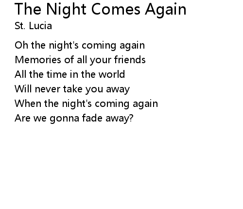 Oh the night's coming again