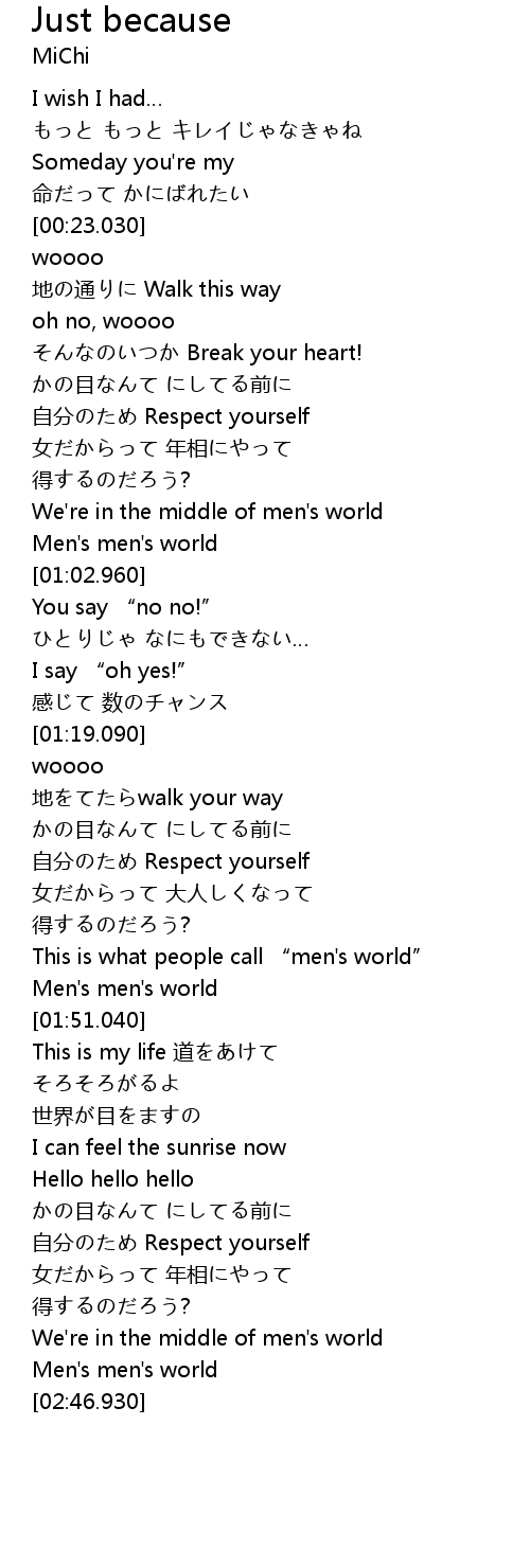 | [00:10.410] | もっと もっと キレイじゃなきゃね |