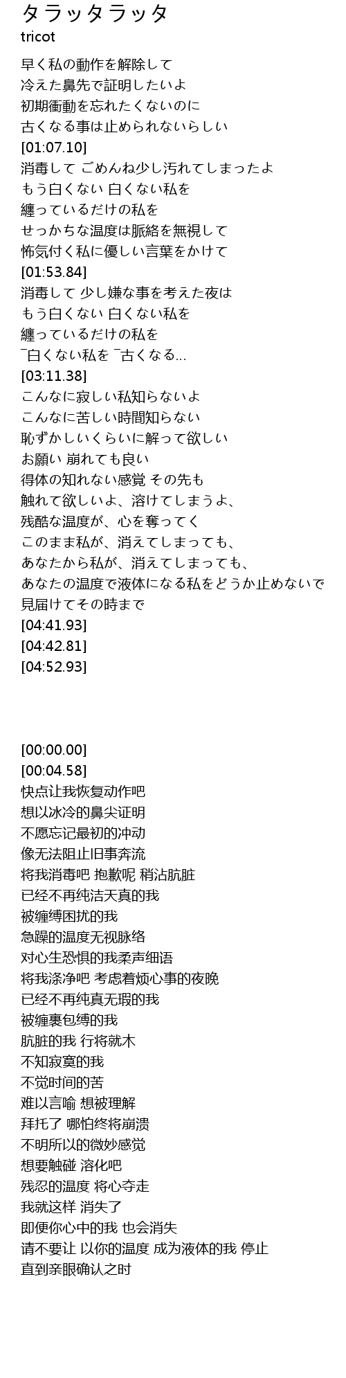 | [01:09.27] | 消毒して ごめんね少し汚れてしまったよ |