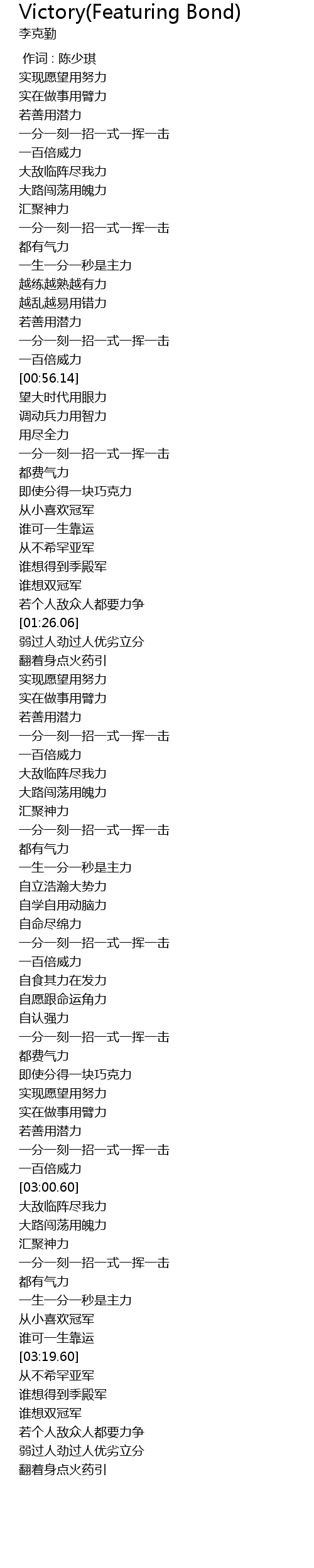 | [03:14.52] | 从小喜欢冠军 |