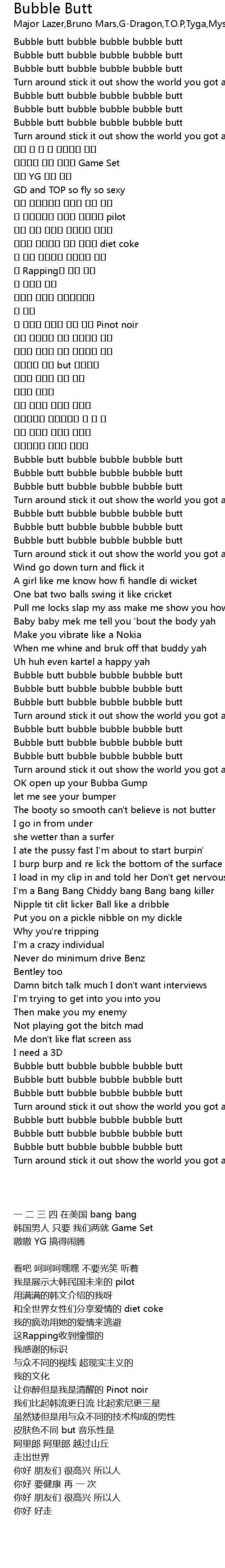 | [01:35.200] | Bubble butt bubble bubble bubble butt |
