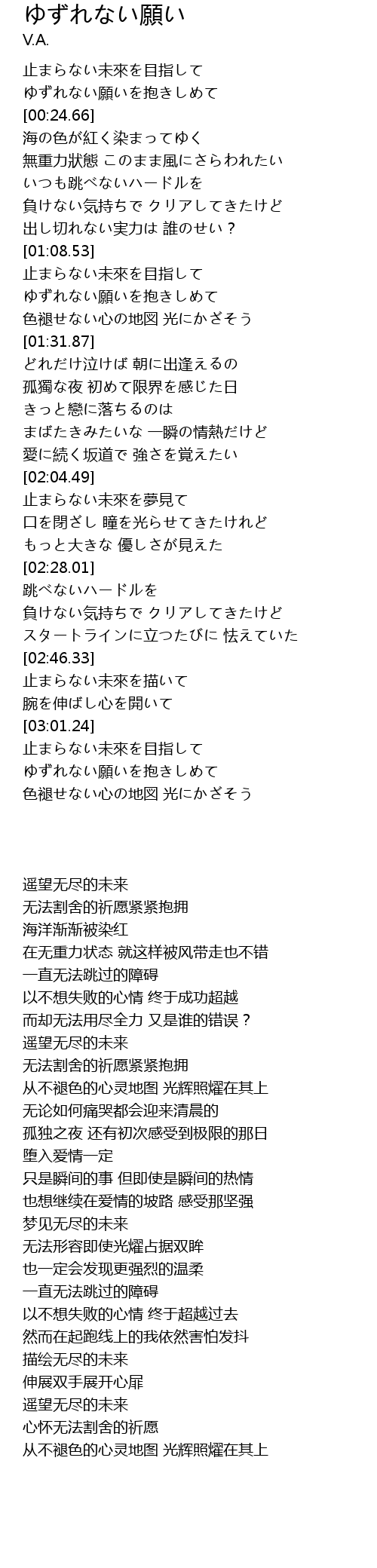 | [03:08.18] | ゆずれない願いを抱きしめて |