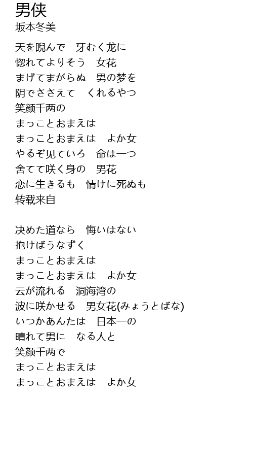 まっことおまえは よか女 |