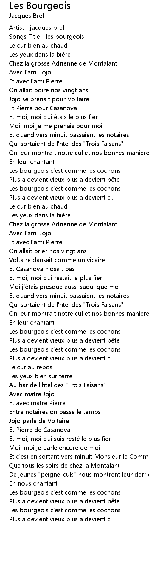| Songs Title: les bourgeois | |