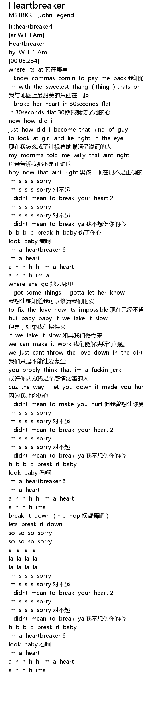 | [01:00.685] | b b b b break it baby 伤了你心 |
