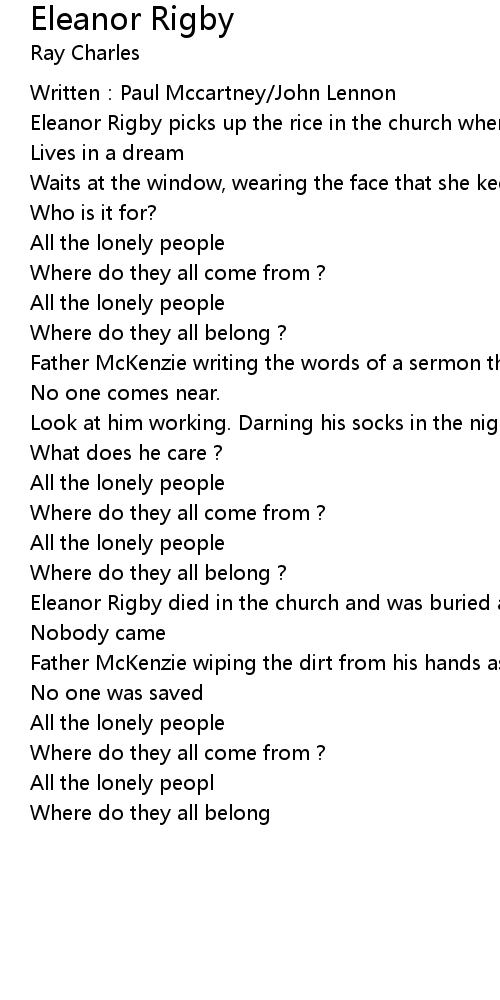 | Eleanor Rigby died in the church and was buried along with her name | |