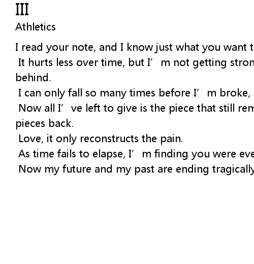 | I can only fall so many times before I’m broke, unrecognizable. | |