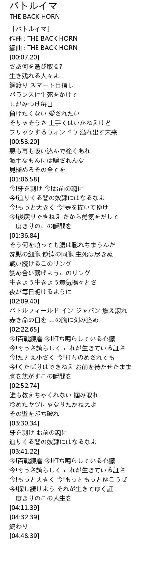 | [00:04.20] | 編曲∶THE BACK HORN |
