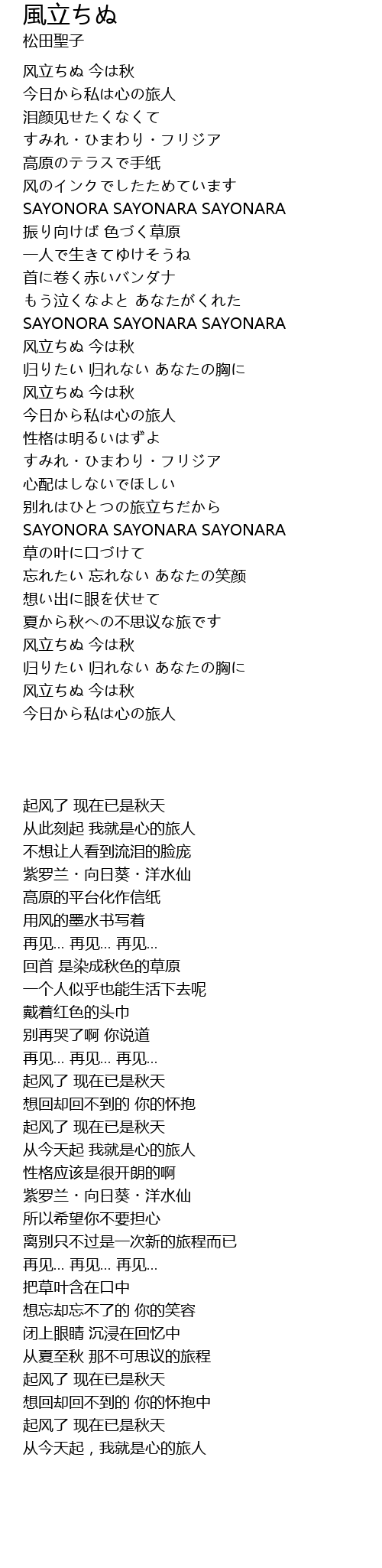 | [03:07.72] | SAYONORA SAYONARA SAYONARA |
