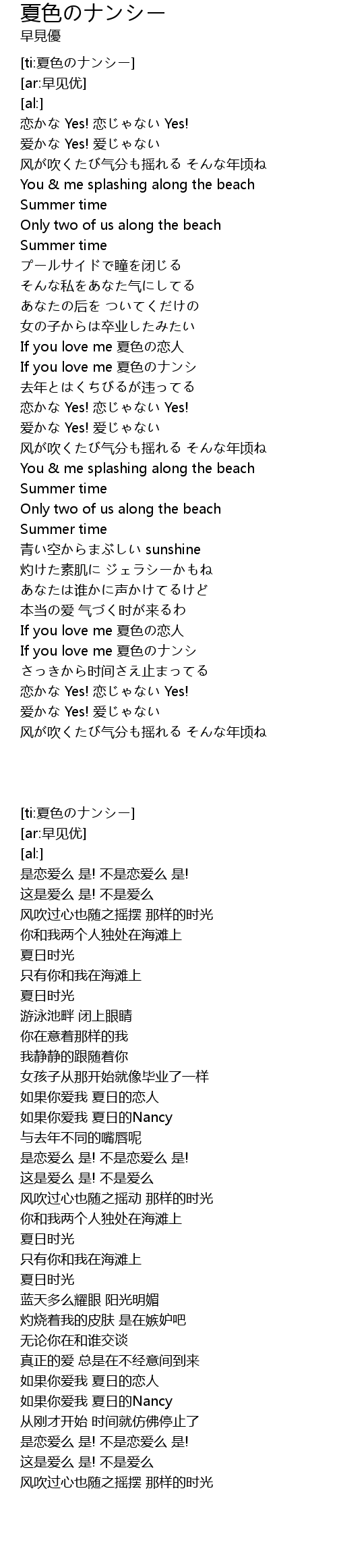 | [01:09.50] | 如果你爱我 夏日的Nancy |