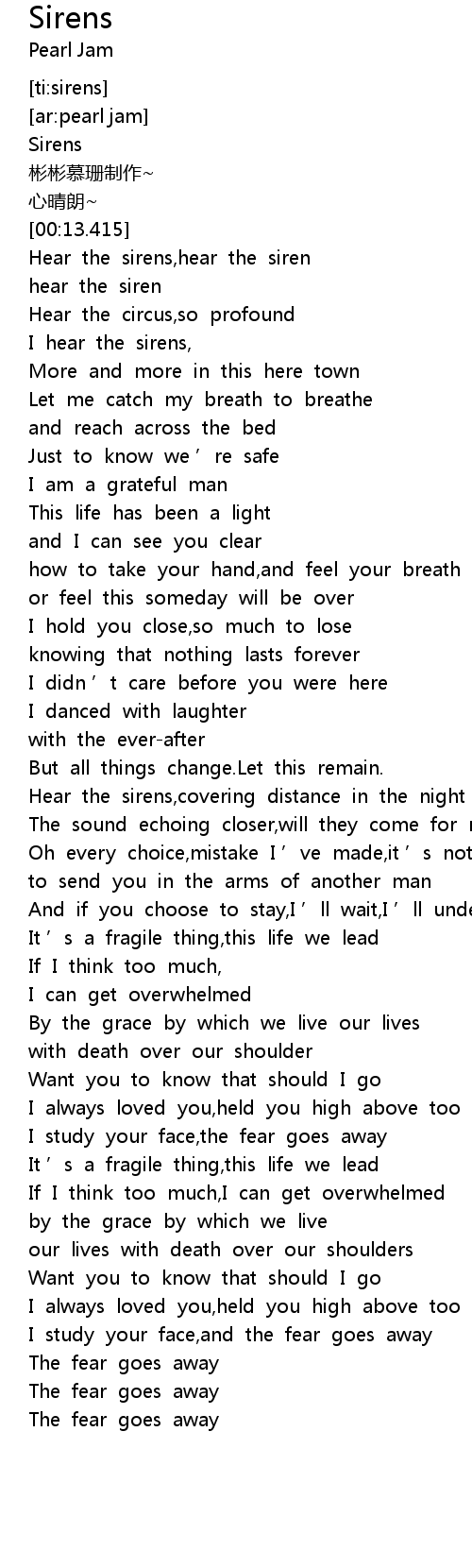 | [00:13.415] | Hear the sirens,hear the siren |
